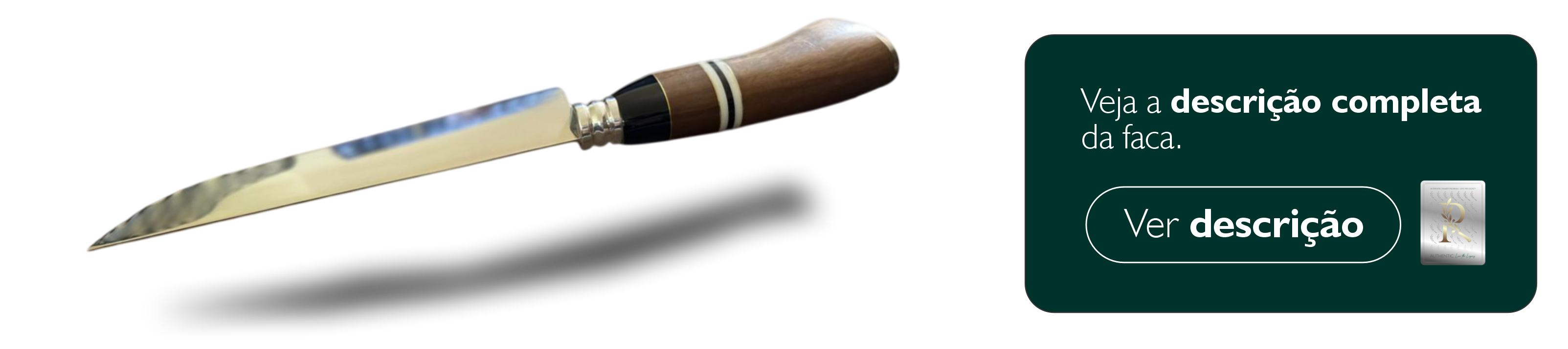 A Segmentada Luxo 32 é a expressão máxima de uma peça clássica de alto padrão, criada para quem aprecia beleza, tradição e desempenho profissional em uma única faca. Seu cabo segmentado é uma verdadeira obra de arte: combina três cores e materiais distintos, perfeitamente alinhados e separados por espaçadores dourados que elevam o visual a um nível de sofisticação raro, quase colecionável. Essa construção não só entrega elegância, mas também equilíbrio e ergonomia superiores. A lâmina polida de 19 cm oferece um corte limpo, preciso e extremamente versátil, ideal tanto para uso culinário profissional quanto para compor uma mesa ou vitrine de alto impacto visual. Pensada para impressionar em qualquer ocasião, a Segmentada Luxo 32 une estética impecável, acabamento premium e performance que atende aos mais exigentes apreciadores da cutelaria artesanal.