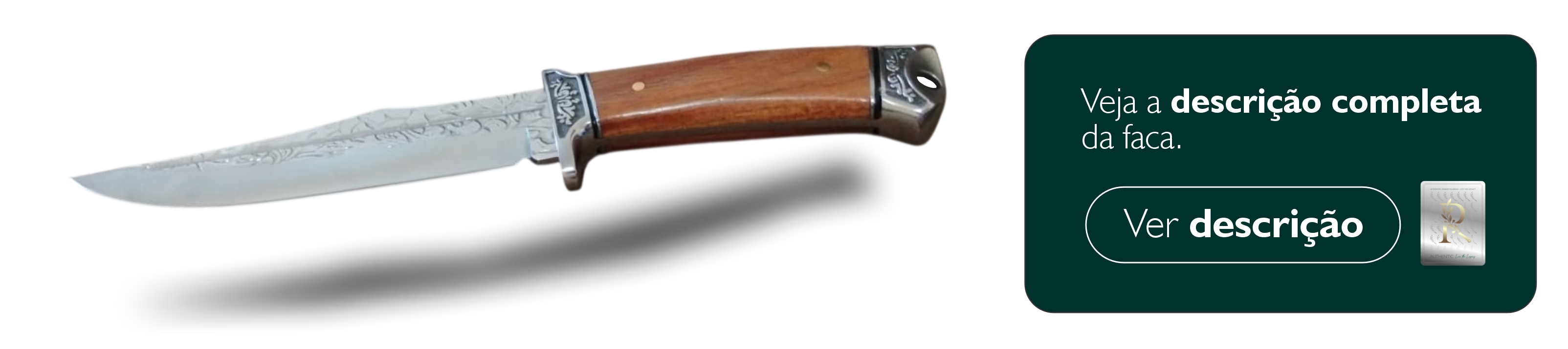 A Faca Valorian Sigurd Wood 30 é uma peça de caráter clássico e imponente, desenvolvida para quem valoriza tradição, estética refinada e autenticidade. Sua lâmina longa com gravações ornamentais ao longo do dorso, aliada à guarda trabalhada e ao cabo em madeira nobre, entrega uma combinação única de elegância, robustez e presença histórica. Uma faca pensada tanto para uso quanto para coleção.